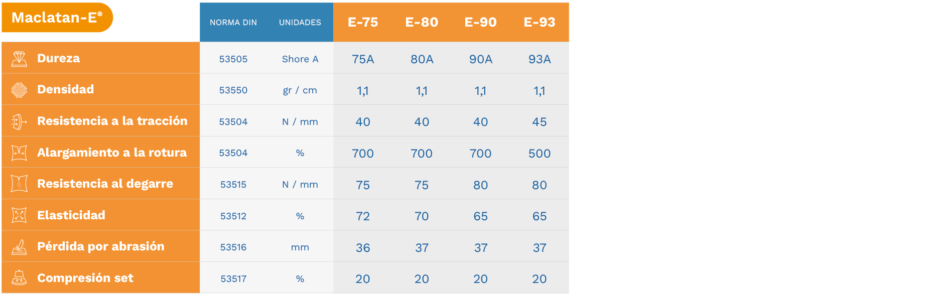- Buena recuperación elástica, con una excelente Compression set