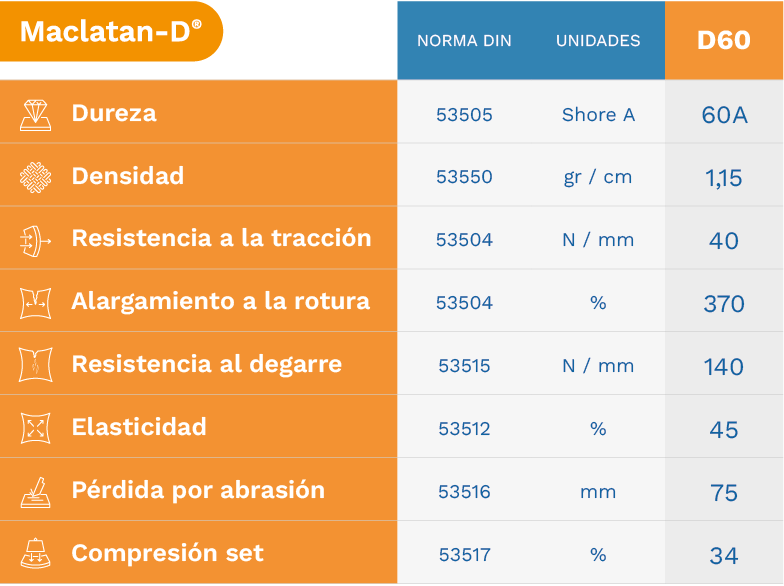 Poliuretano de muito elevada dureza, mantendo as suas excelentes propriedades elásticas.